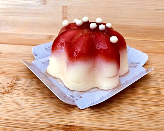 Mousse de limón con salsa de frambuesa.